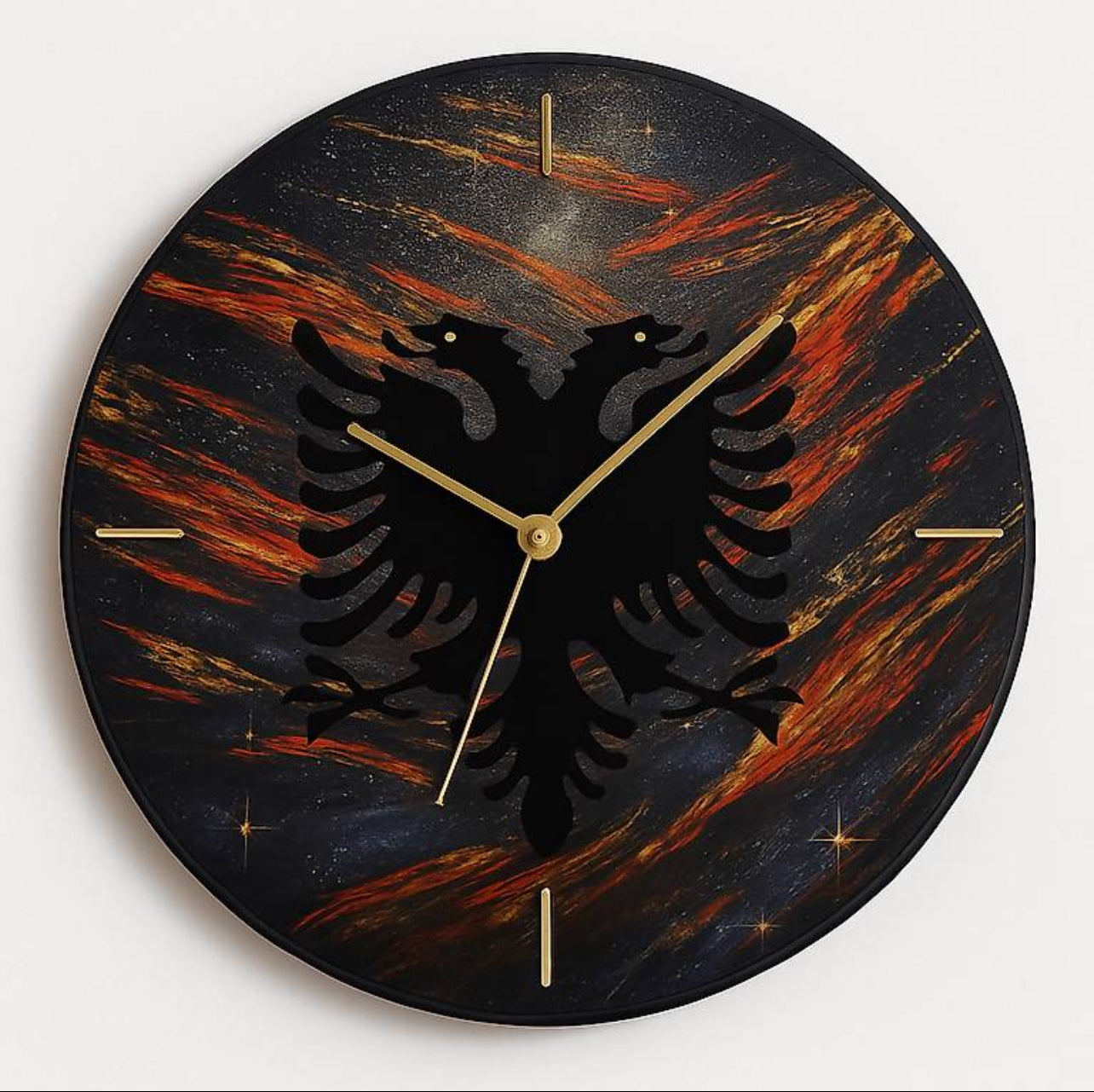 Jede Uhr wird von Hand gefertigt, mit hochwertigen Acrylfarben bemalt und anschließend mit klarem Epoxidharzüberzogen, um einen faszinierenden Tiefeneffekt und dauerhaften Glanz zu erzeugen.