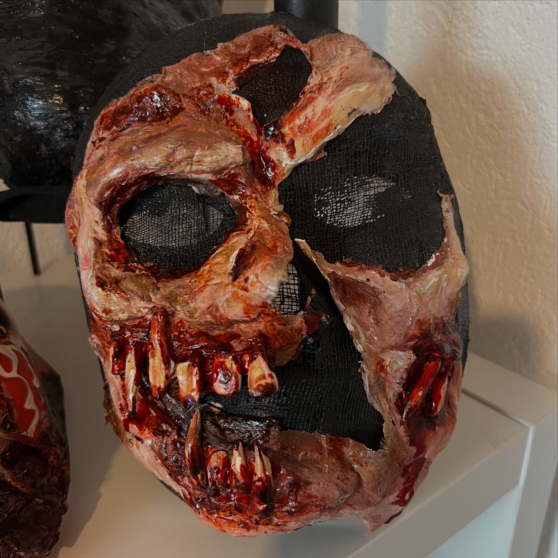 Jedes Detail wurde sorgfältig modelliert: künstliche Wunden, verfaultes Fleisch und glänzendes Blut schaffen eine täuschend echte, schockierende Optik. Diese Maske ist ideal für Halloween, Horrorfilme, Sammler oder SFX-Fans, die nach etwas wirklich Einzigartigem suchen.