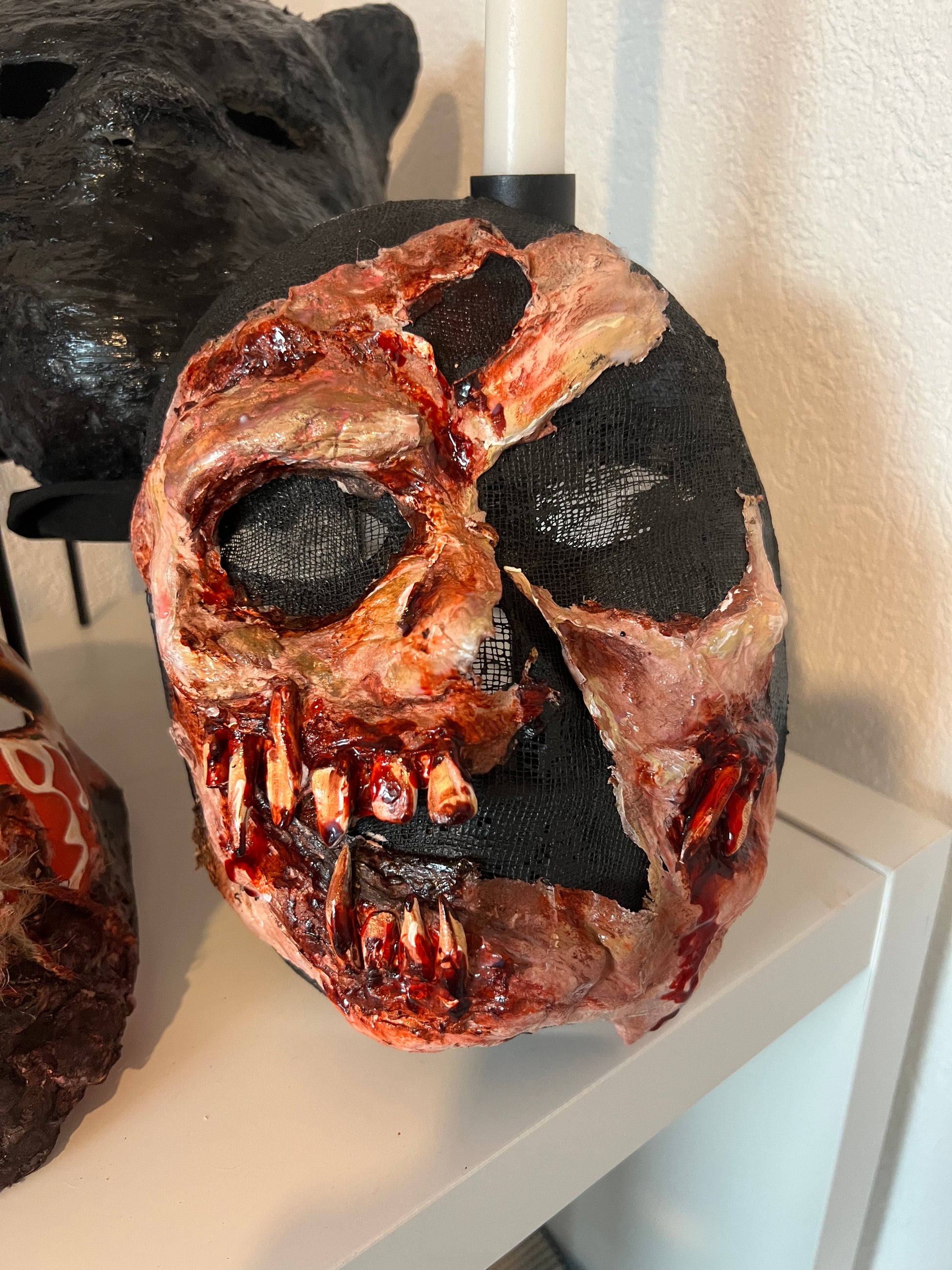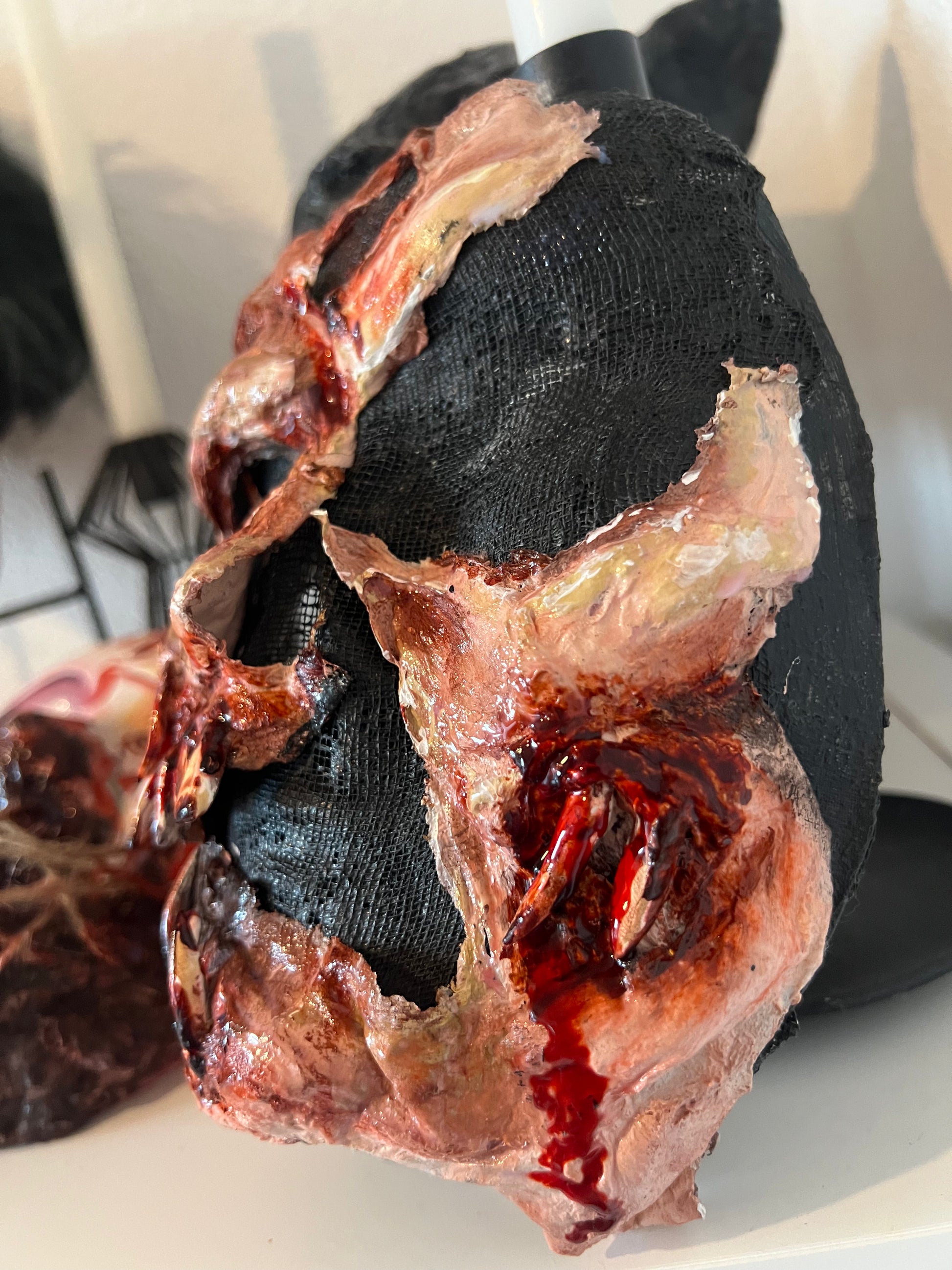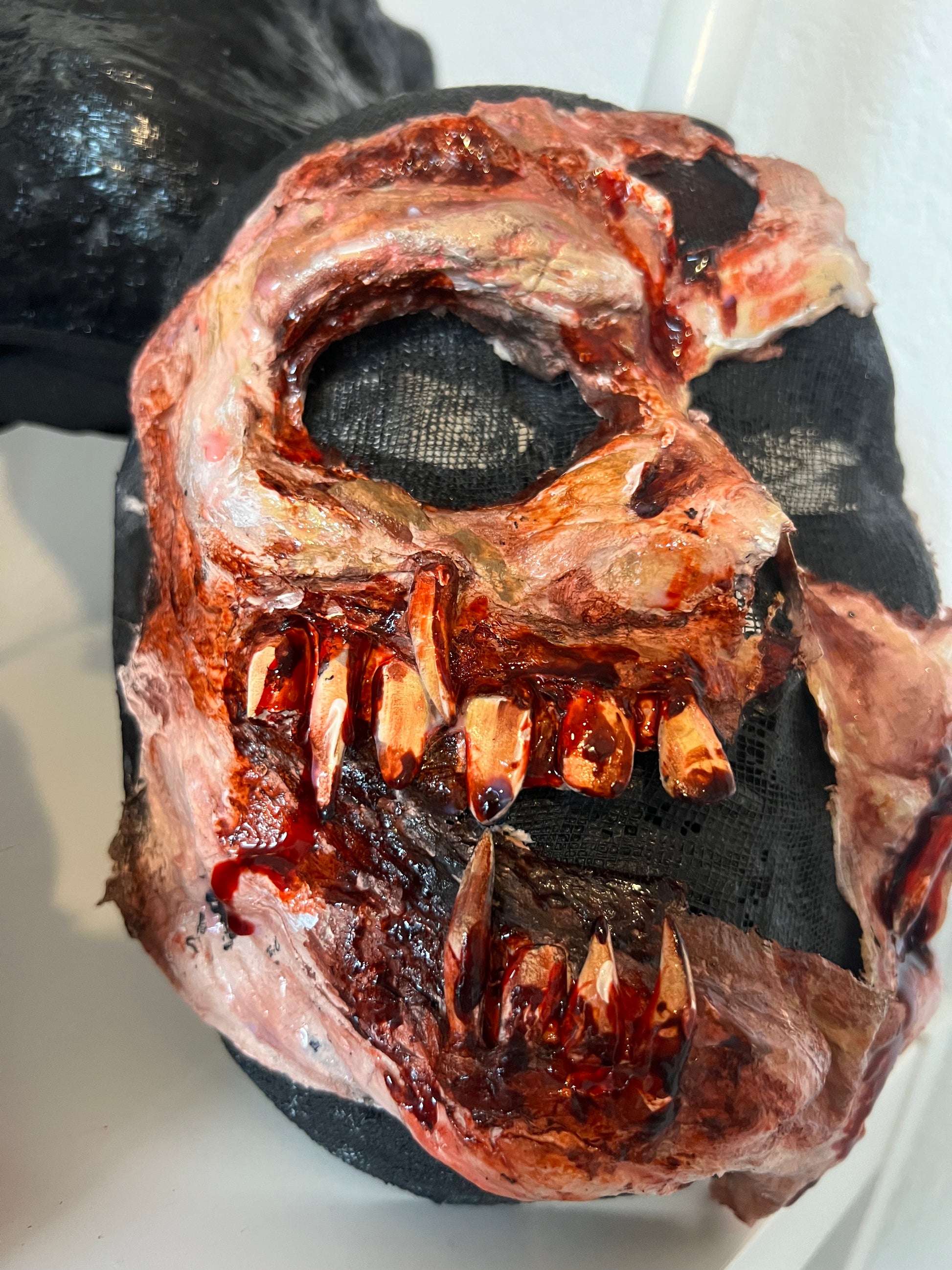 Ein Unikat von ScaryAngel FX, gefertigt mit Latex, Farbe, Kunstblut und feinem Netzgewebe. Flexibel, haltbar und für maximalen Schockeffekt konzipiert.